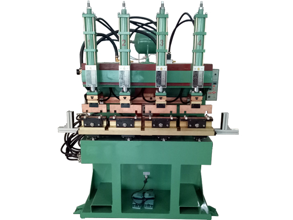 多头波浪点焊机(B型)是用于置物架网片的波浪焊接,一次完成整条波浪的焊接。